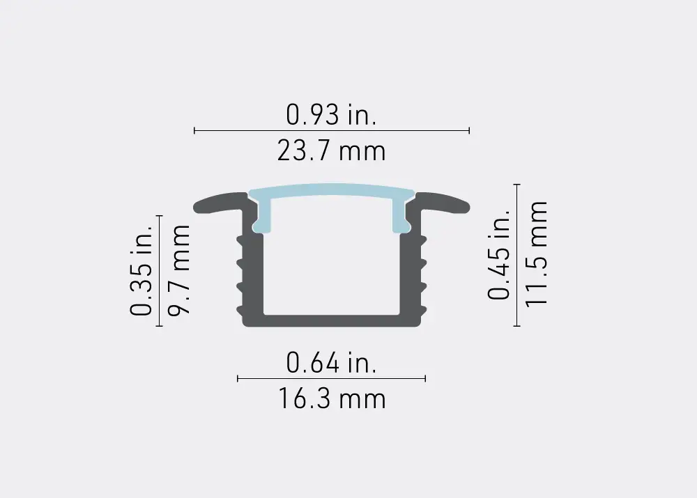 Designed for a snug fit in a 5/8-inch (16mm) wide, 3/8-inch (10mm) deep recess.