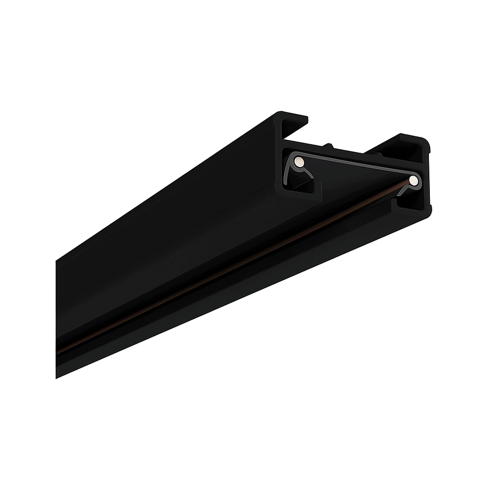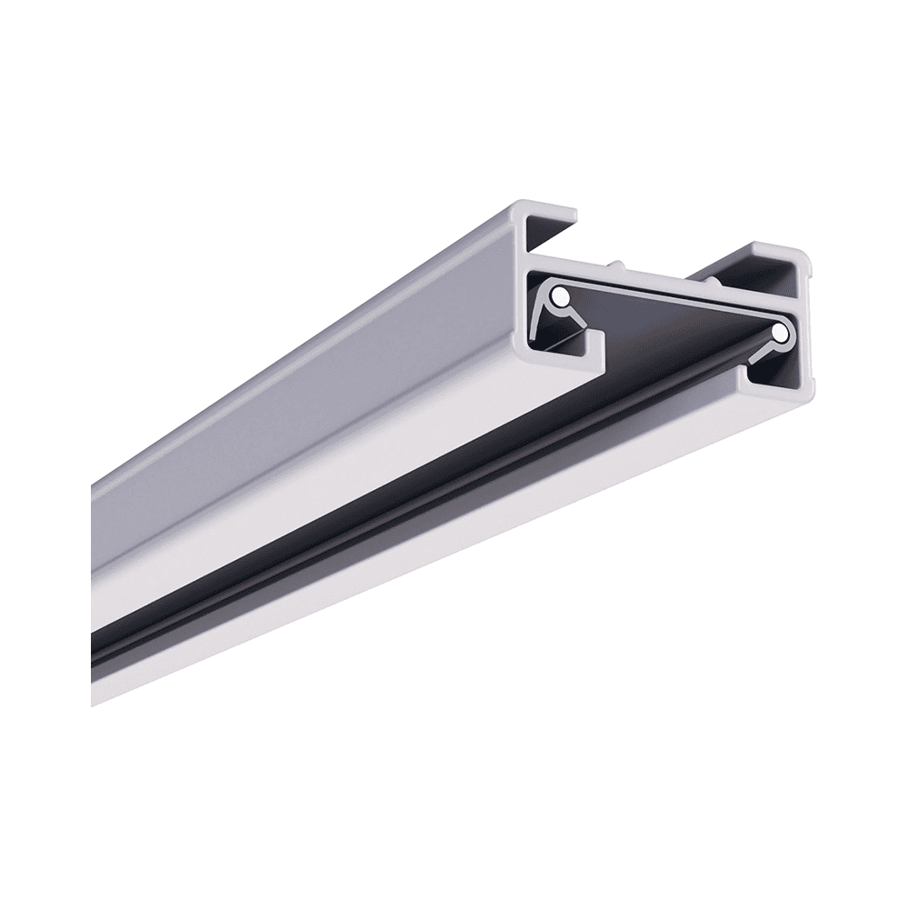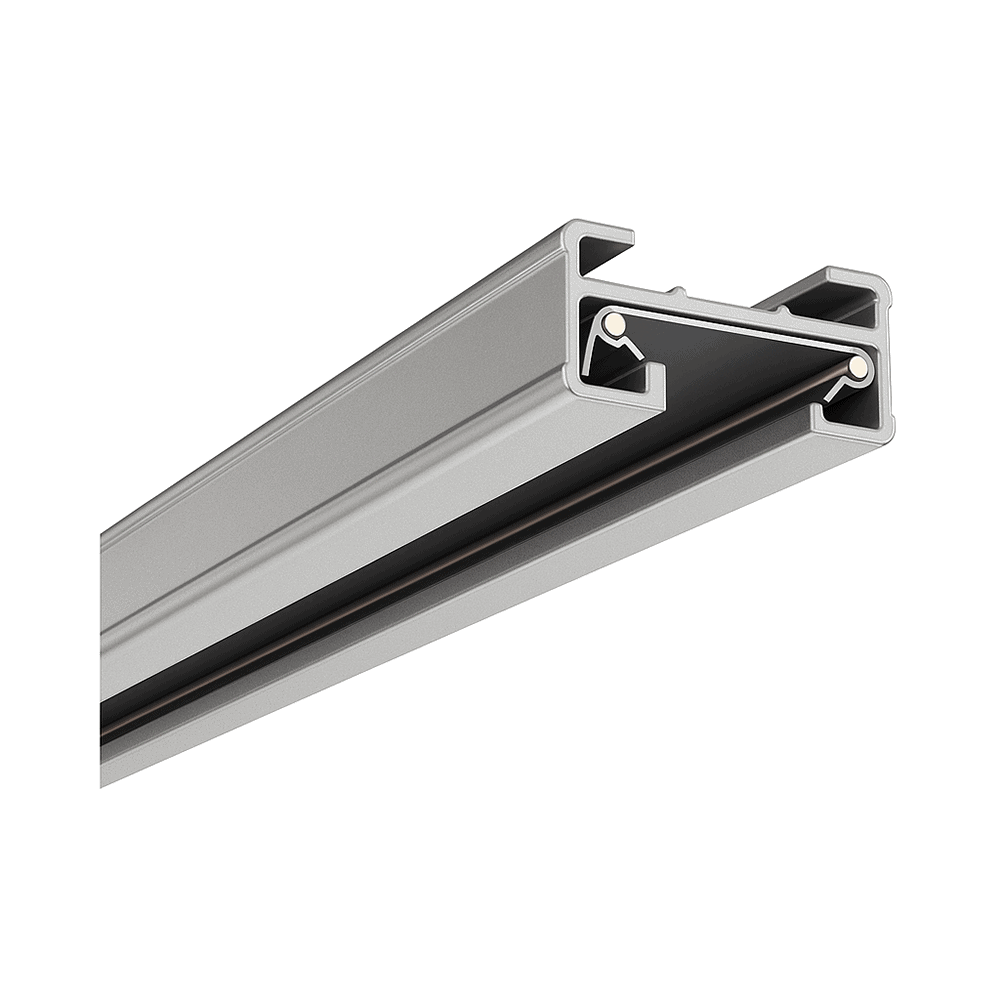 Single circuit track is available for 120V applications. Single hot and neutral conductors are rated for 20 Amps per branch circuit. Copper electrical conductors are concealed in an insulating thermoplastic low profile track cross-section.