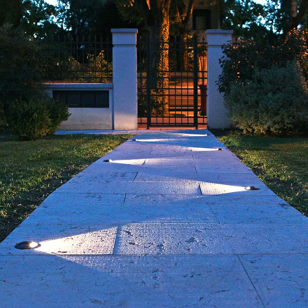 Built-in unpolarized electronic system. Electronic control of operating temperature through a thermal sensor that detects overheat and, by self-regulating the current, reduces the power. This feature guarantees that the luminaire will last with ambient temperature up to 140° F