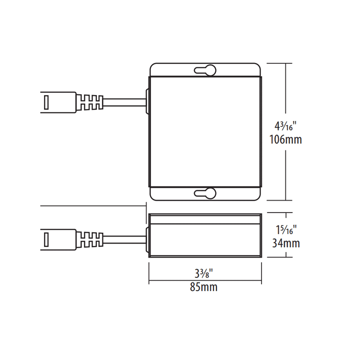 Extruded aluminum hardwire box with 300mA dimmable class II electronic LED driver with 100-135V AC input. Includes an 18″ FT6 rated cable with DC 2.1 connector between driver and fixture approved for use in plenums and suspended ceilings.