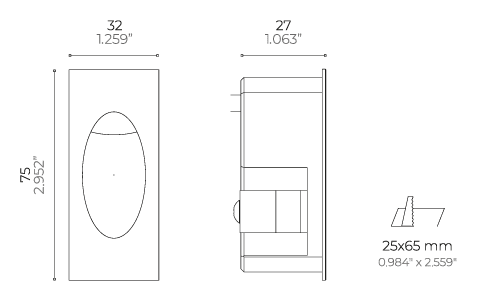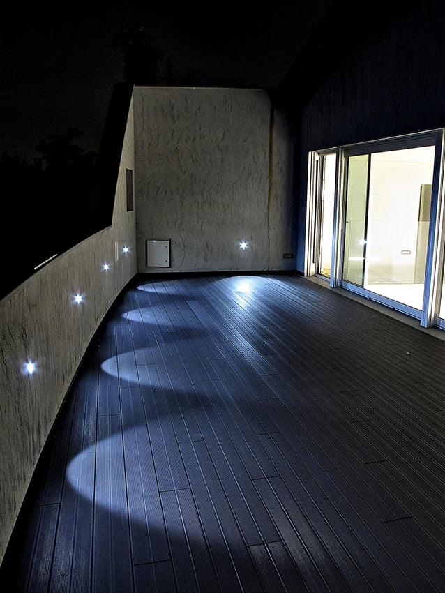Recessed lighting fixture with asymmetrical light beam for flood or step lighting. Suitable for indoor and outdoor applications. Available in three shapes: rectangular, square and circular. Made of painted aluminum, zinc alloy and UV-resistant nanopolymer resin that ensures complete waterproofness.