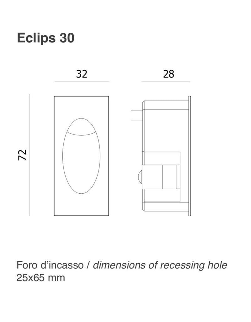 Recessed lighting fixture with asymmetrical light beam for flood or step lighting. Suitable for indoor and outdoor applications. Available in three shapes: rectangular, square and circular. Made of painted aluminum, zinc alloy and UV-resistant nanopolymer resin that ensures complete waterproofness.