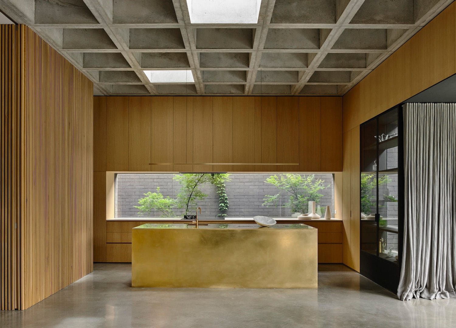 We wanted a minimal light that encouraged the architecture, already rich with material, to speak, breathe and age gracefully. Working with local brass millers, glass fabricators and woodworkers, the Highline is available in satin or antique patina brass, with American walnut timber and high quality LED technology.