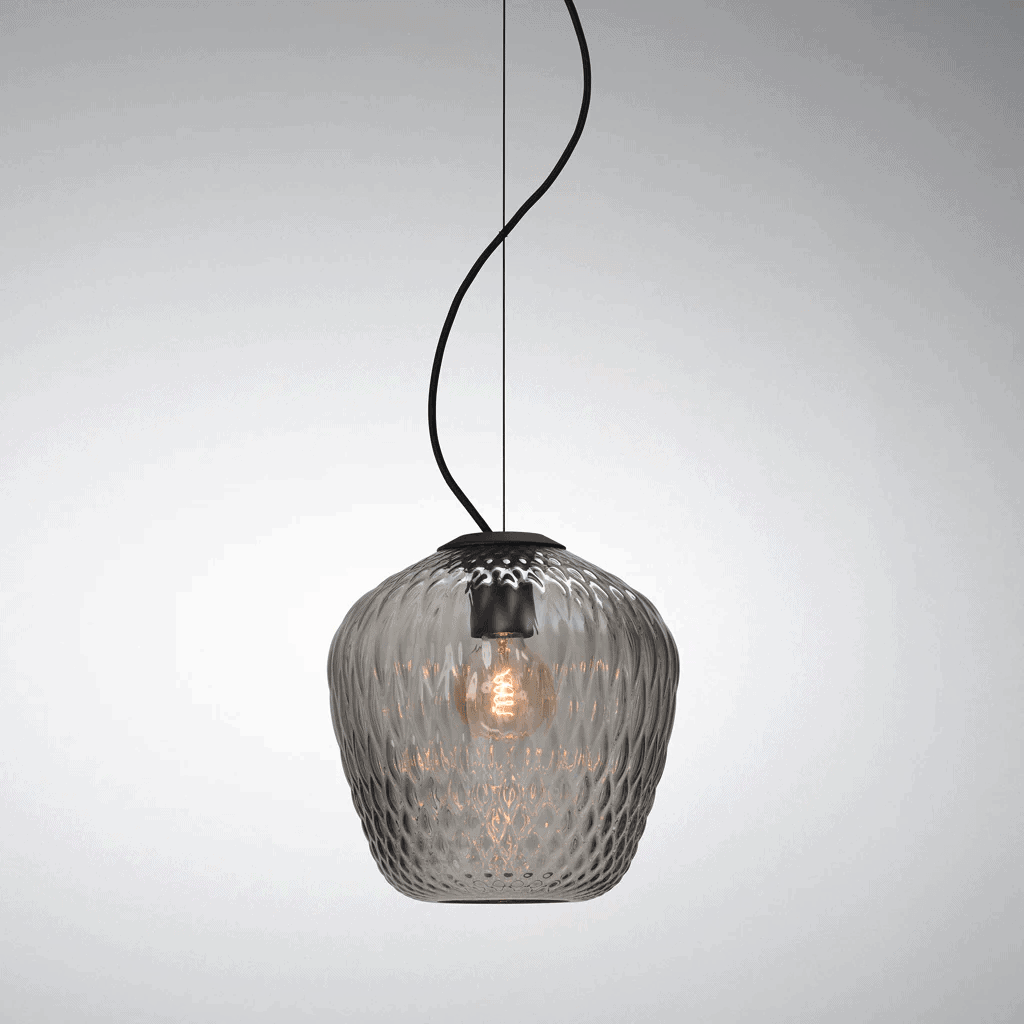 While experimenting with the reflections and refraction of light, designer Samuel Wilkinson discovered a beautiful quilted effect when the light source was surrounded by patterned glass. This led to his design of the Blown series.