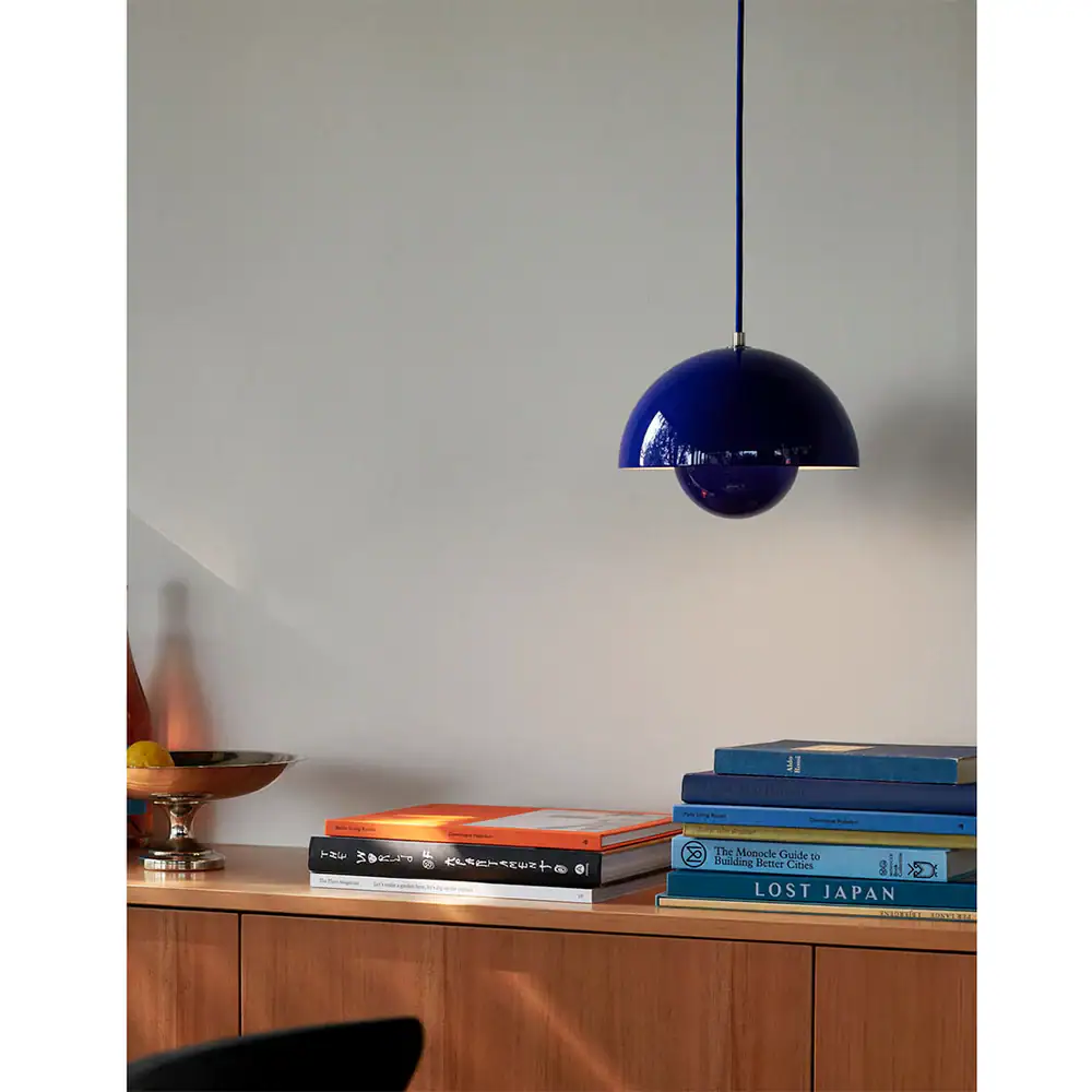 Among the most norm-breaking Danish designs of the 1960s, the iconic form of Verner Panton's Flowerpot is available in a series which now consists of seven different models. In close collaboration with the Panton family, we are pleased to welcome five new and exciting, vibrant colours to our range for 2023: Cobalt Blue, Swim Blue, Vermilion Red, Tangy Pink and Dark Plum. Alongside this scintillating colour expansion, we are also excited to welcome a re-issue of a Panton original, black and white wave-pattern design inspired by the 70s.