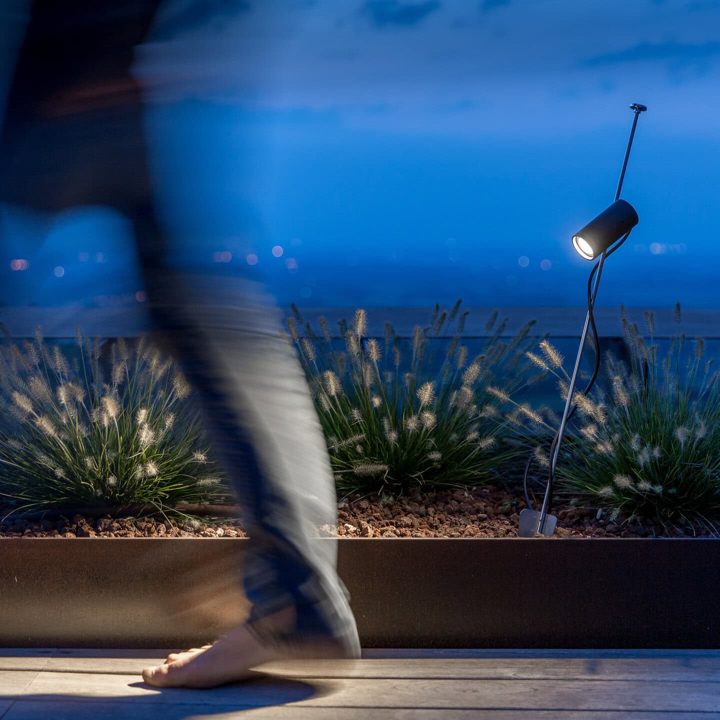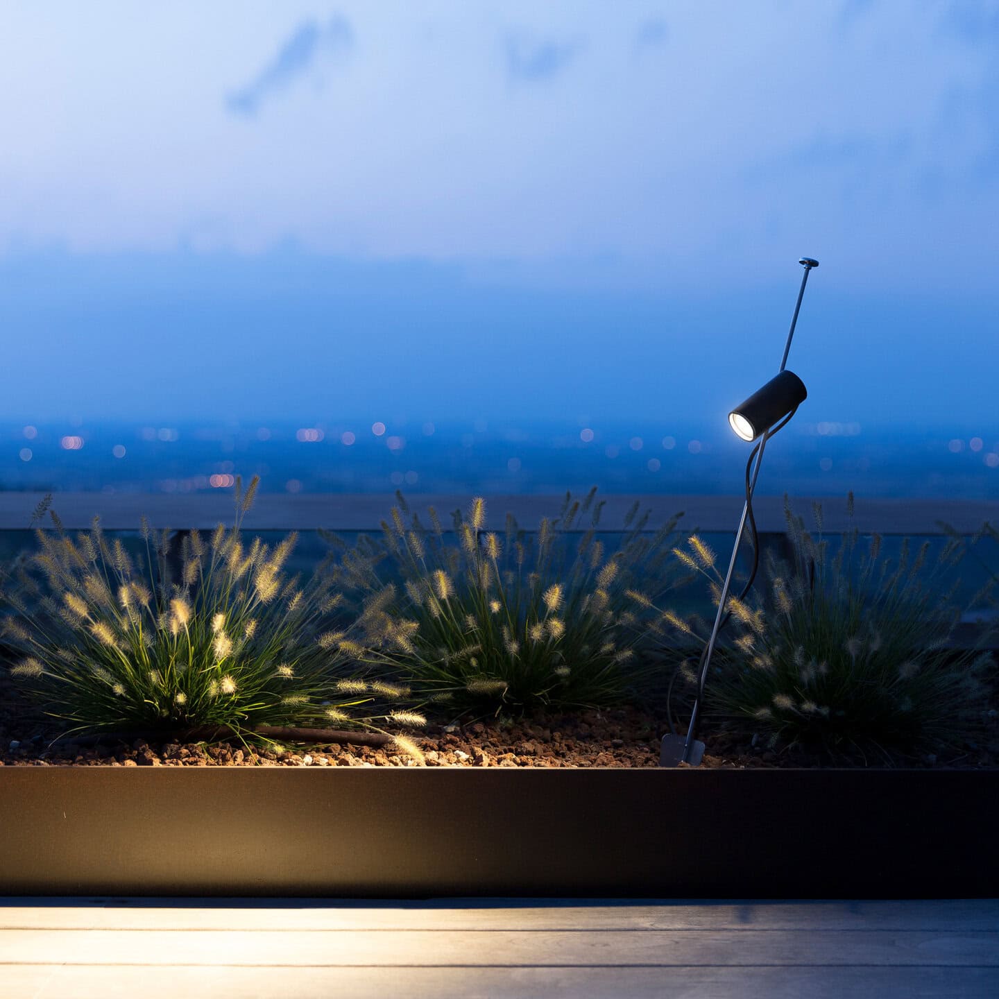 A small luminous elf that you can install in your garden or inside a vase. A thin stem stuck into the ground and a little adjustable LED projector. For illuminating a flower, a plant or simply to accompany us along a path. Lamp with spike.