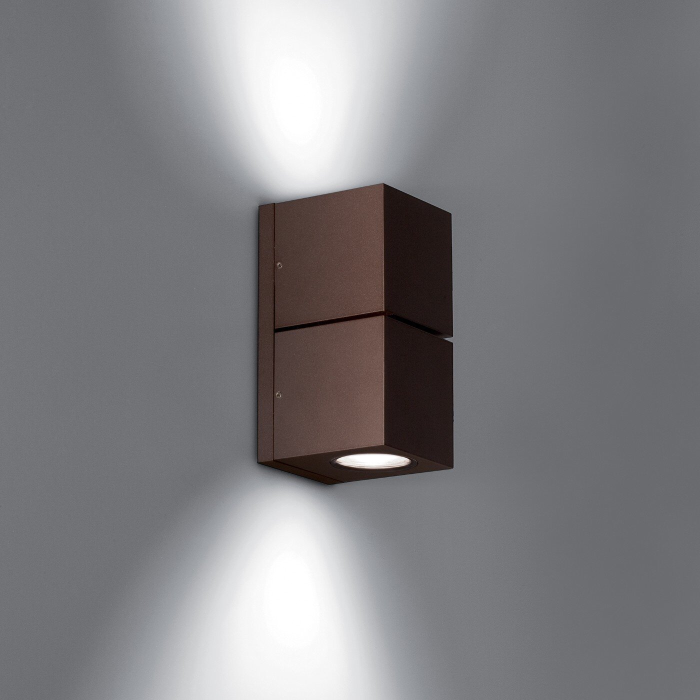 Compact wall luminaire with light emission on two sides for exterior or interior use