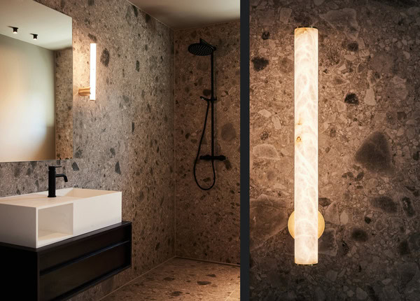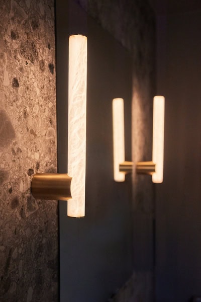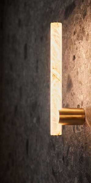 The tube has been finely polished resulting in a silky soft surface that enhances the unique marble structure of the natural stone. We have removed any disturbing elements from the meeting between the two materials, resulting in a streamlined and unique lamp that seems as if to float. AW400T is a wall-mounted lamp that measures 400 mm in length. LEDs inside the alabaster tube ensures that a homogeneous and continuous light is emitted throughout the stone.