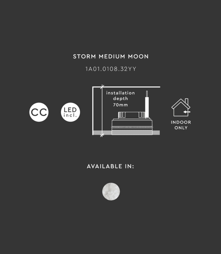 Storm Medium Moon is designed to flush ceilings or walls. A soft light shines through the alabaster stone, and provides a pleasant light. A perfect solution for a night light or the staircase.