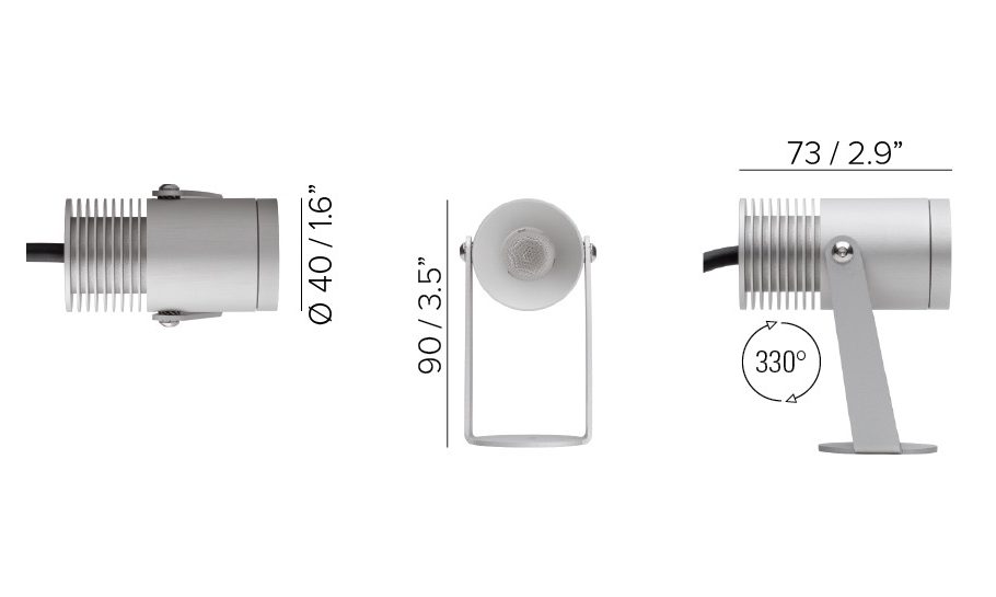 Model 24V DC: electronic control of operating temperature through a thermal sensor that detects overheat and, by self-regulating the current, reduces the LED power. This feature guarantees that the luminaire will last in time with ambient temperature up to 140°F. Features an onboard DC driver that ensures overcurrent protection and it is not polarity sensitive