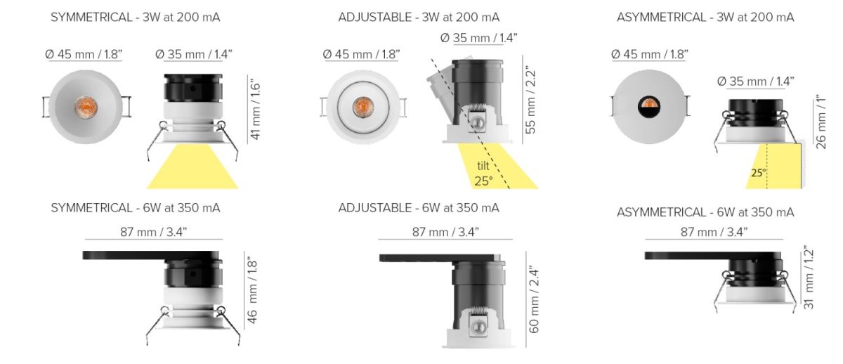 Punchy power in a mini glare-free compact adjustable downlight with German tech optics. Great for shallow ceilings and hospitality millwork.